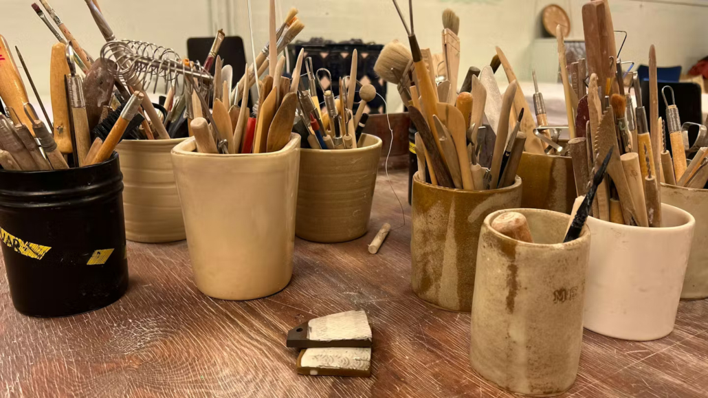 Det finns ingen lärare i workshoplokalen där man sitter och arbetar, dock får du stöd vid glaseringen i keramikverkstan.